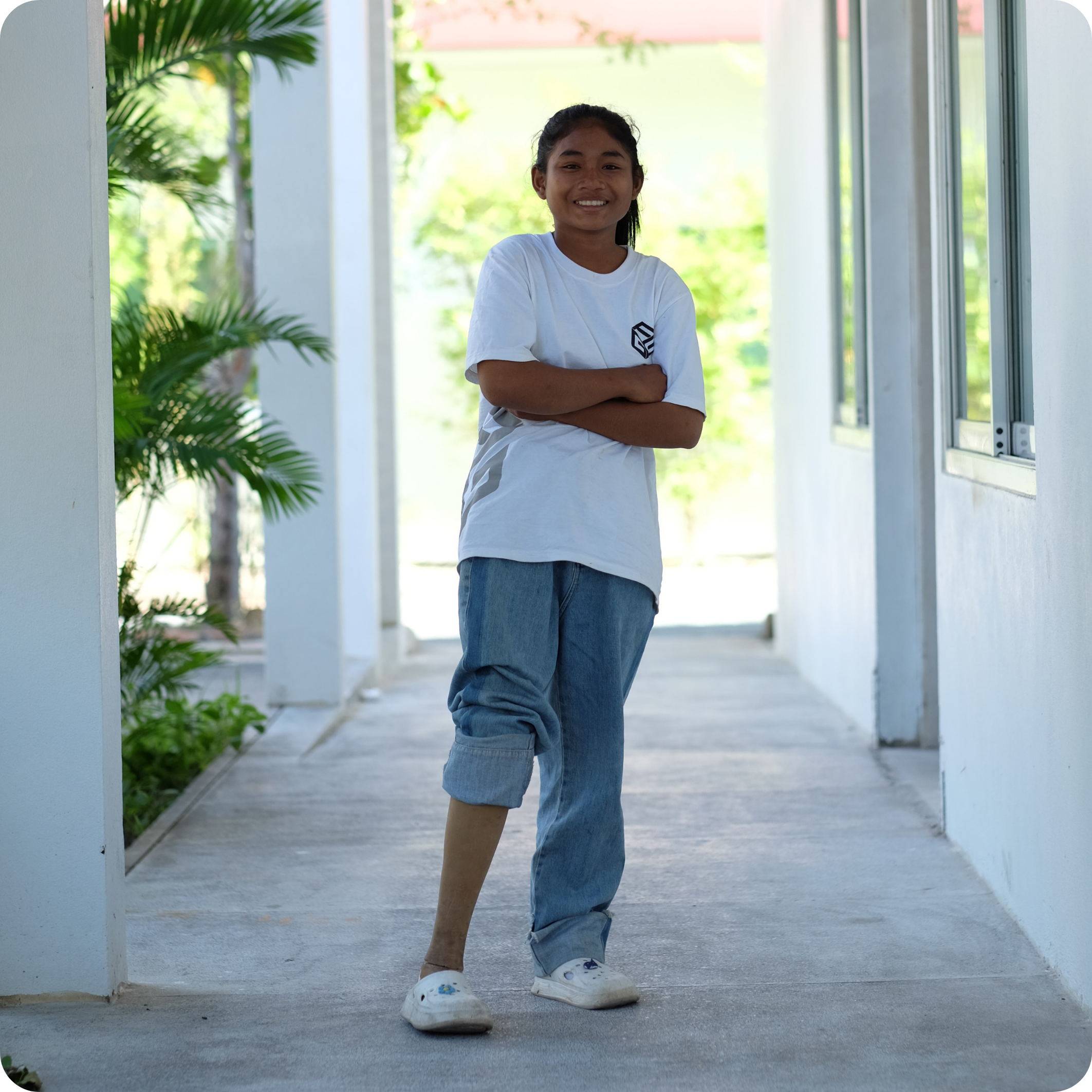 When we met Sreynai, she had just lost her leg from a snake bite and faced a future filled with challenges. Now, she is a high schooler with a bright future ahead of her.