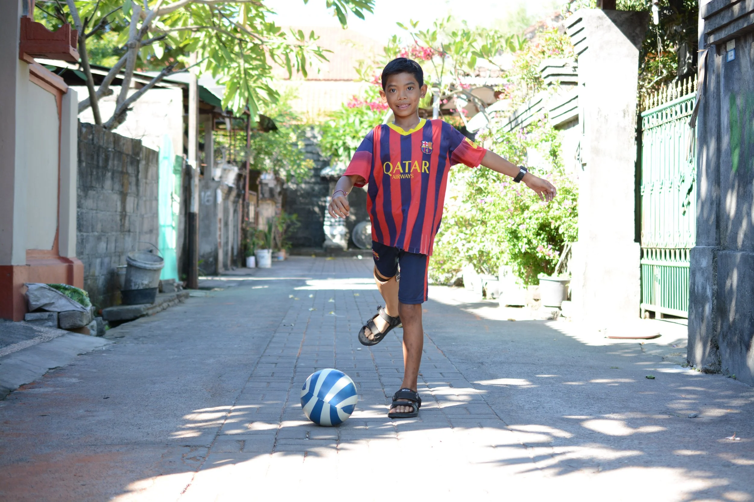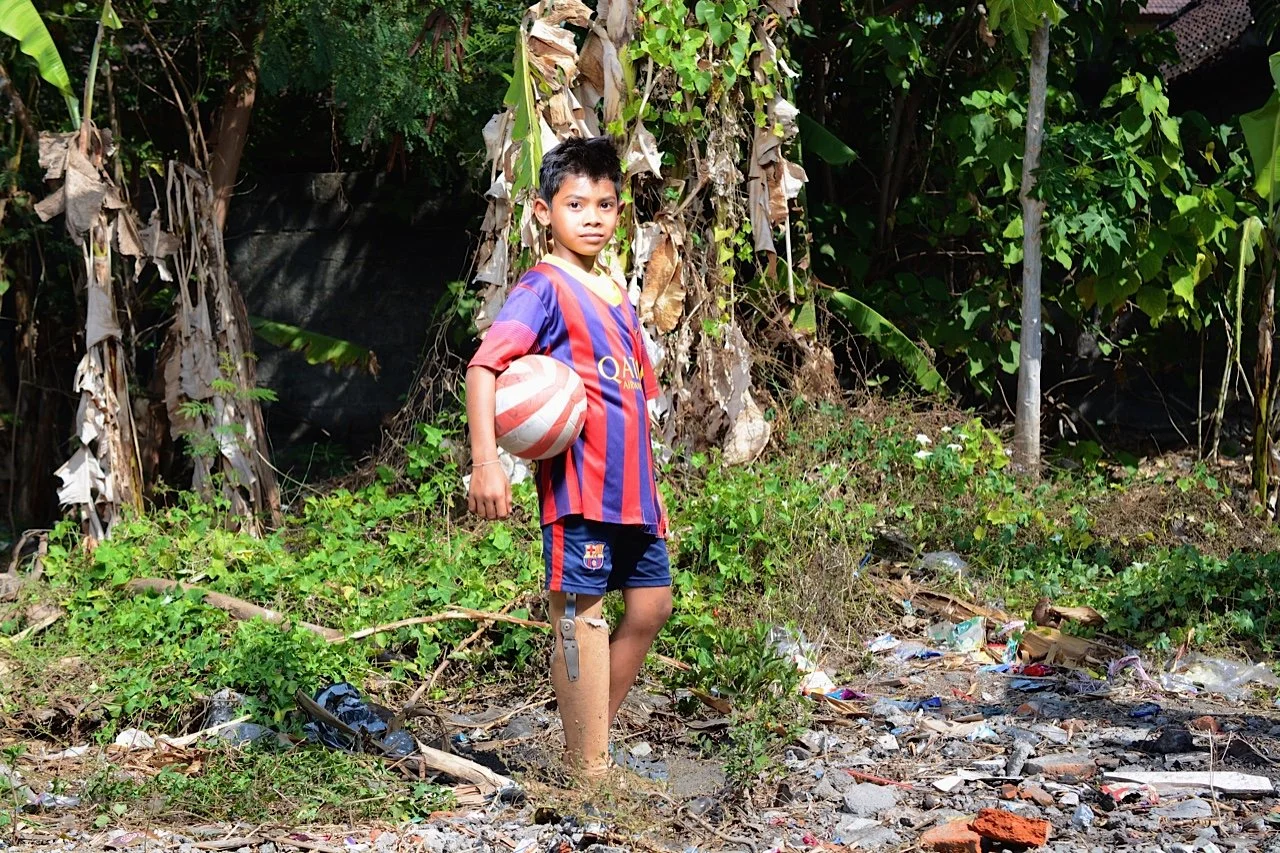 In 2015, with your generous support, we provided Dwi with his very first prosthetic limb. It didn't take long for Dwi to feel comfortable and at ease with its use, jumping quickly from first steps to first dribbles.
